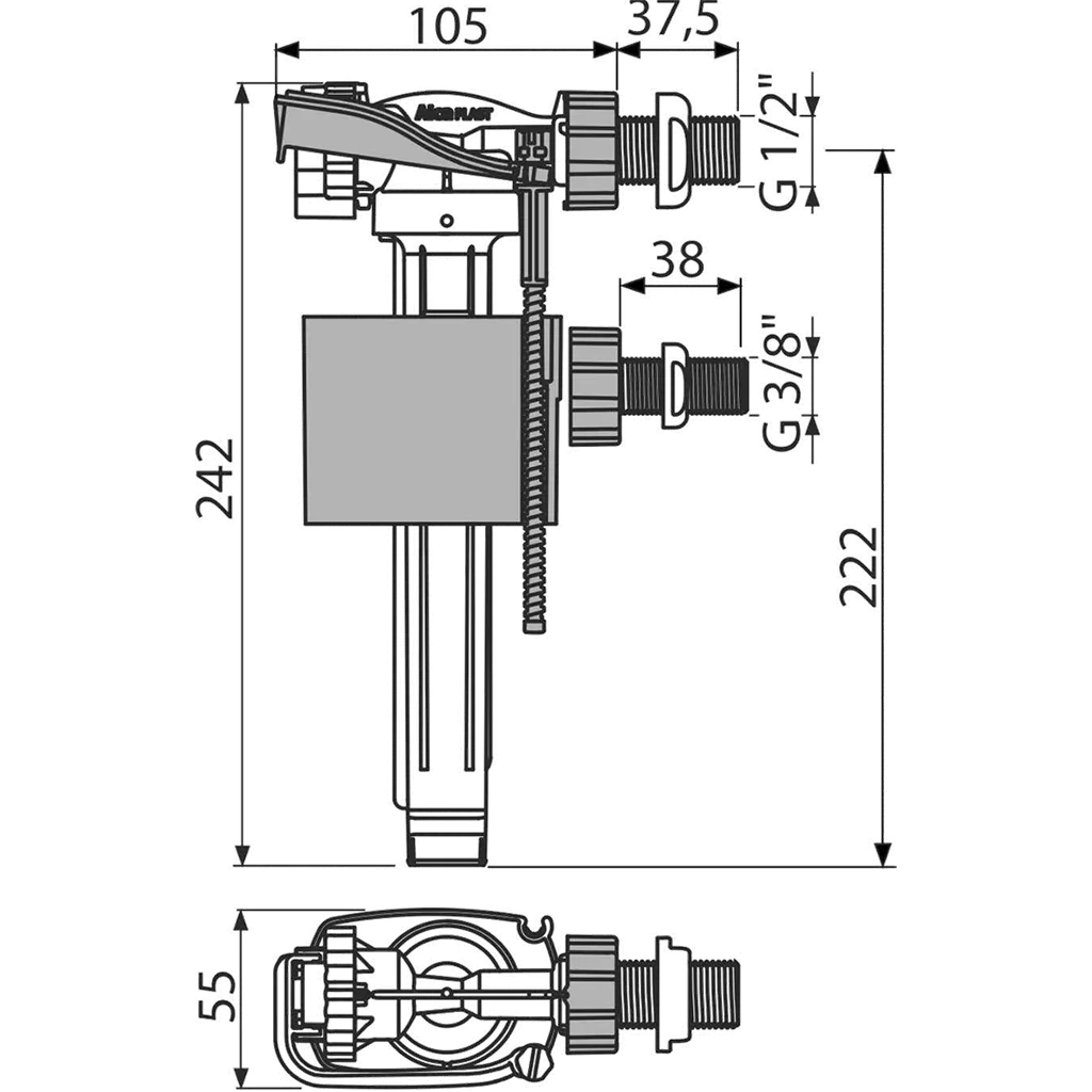 Napouštěcí ventil boční univerzální 3/8" a 1/2" závit A150UNI
