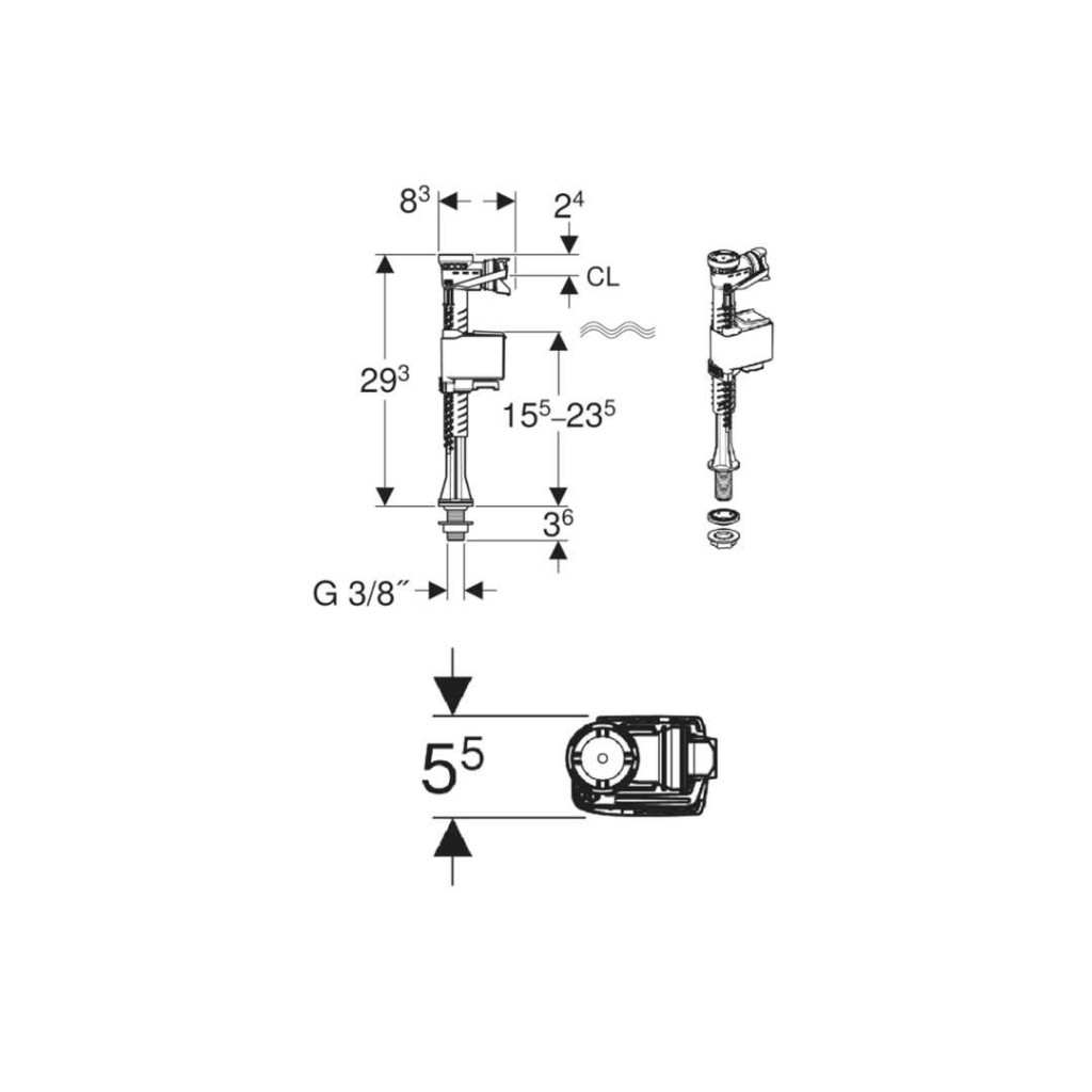 Napouštěcí ventil, typ 323, spodní přívod vody, G 3/8"