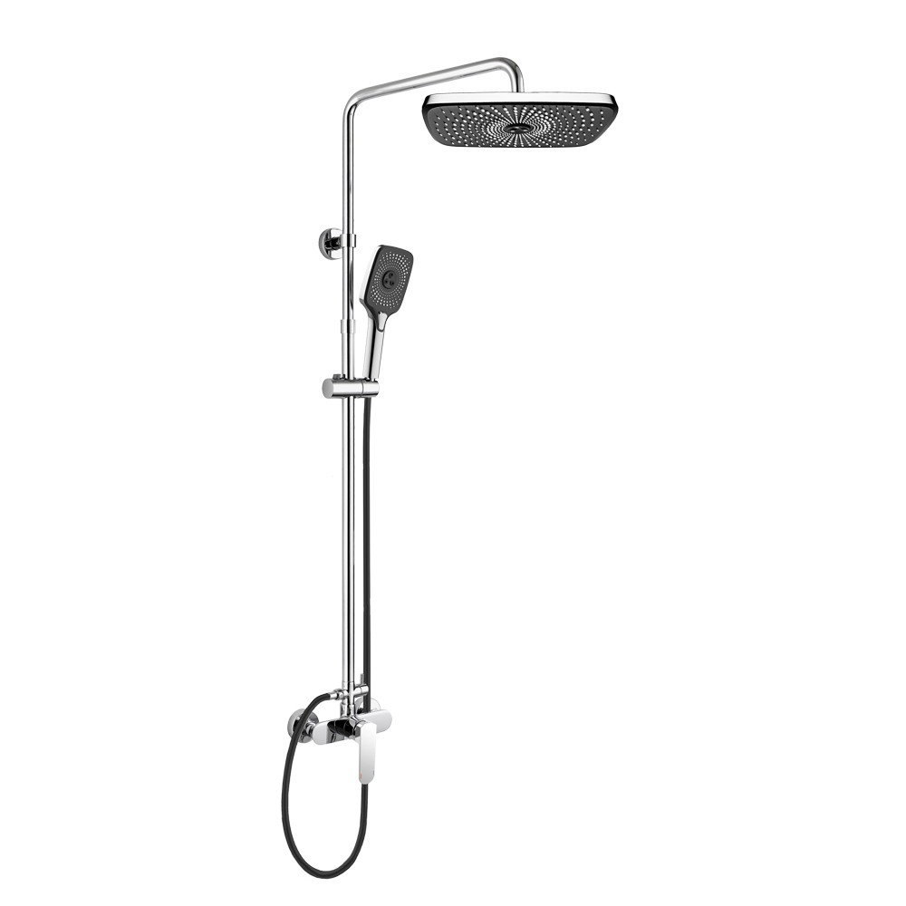 Sprchový set obsahuje baterii se sprchovou soupravou, třípolohovou ruční a hranatou talířovou sprchu. Sprcha je osazena standardním závitem 1/2" pro připojení na sprchovou hadici. Součástí je také černá připojovací hadice o délce 150 cm.