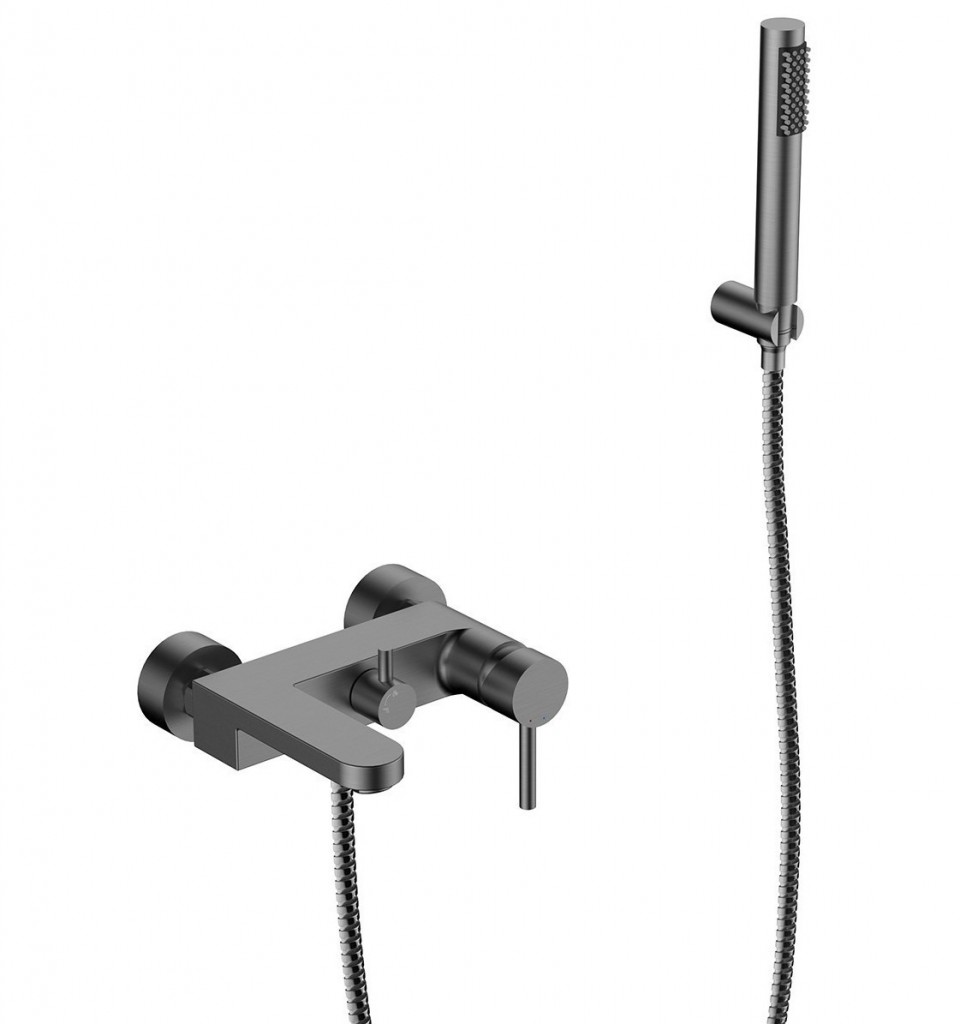 Nástěnná vanová baterie DECCO grafitová barva z prvotřídního materiálu. Uvnitř baterie je keramická kartuše, ta se stará o dlouhou životnost a spolehlivost. Součástí balení je příslušenství pro vanové baterie - ruční sprcha, její držák na stěnu a sprchová hadice. Určená k instalaci na stěnu, rozteč 150 mm. Dodáváme v barvách chrom, černá matná, grafitová a zlatá.