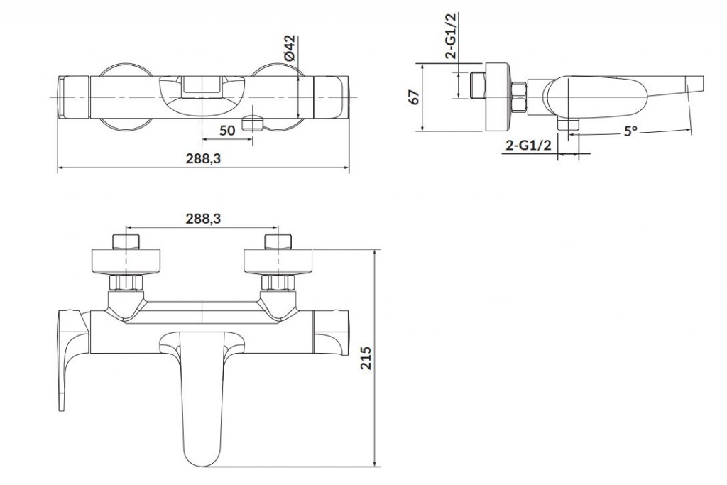 CERSANIT - Nástěnná vanová baterie INVERTO, páková, chrom + černá páčka (S951-312)