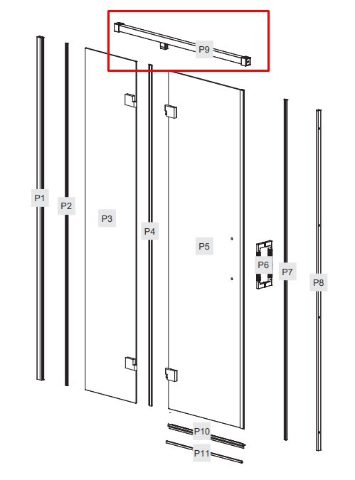 Nástěnný držák pro sprchové dveře LARGA v černém provedení. Jedná se o náhradní díl P9.