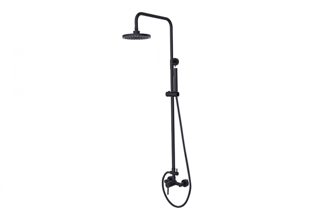 Jedinečný nástěnný sprchový set s příslušenstvím DECCO/ILLUSION v černé barvě. Kompletní řešení pro váš sprchový kout. Set obsahuje baterii, hlavovou sprchu s držákem, vývod ze stěny s držákem, ruční sprchu a hadici. Dodáváme ve šesti barvách a to lesklý chrom, černá matná, grafitová nebo zlatá, zlatá lesklá, zlatá broušená.