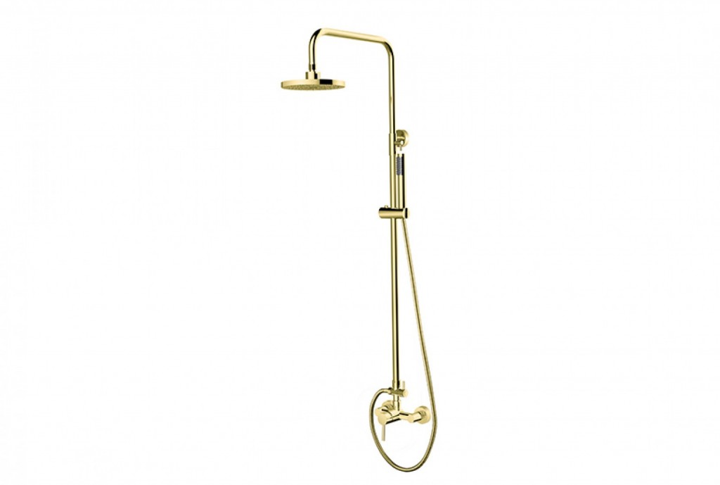 Jedinečný nástěnný sprchový set s příslušenstvím DECCO/ILLUSION v zlatébarvě s elegantními zaoblenými tvary.