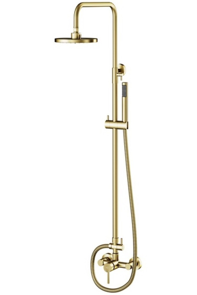 Jedinečný nástěnný sprchový set s příslušenstvím DECCO/ILLUSION v zlaté broušené barvě s elegantními zaoblenými tvary.