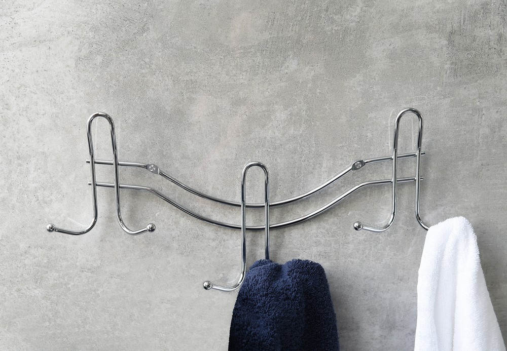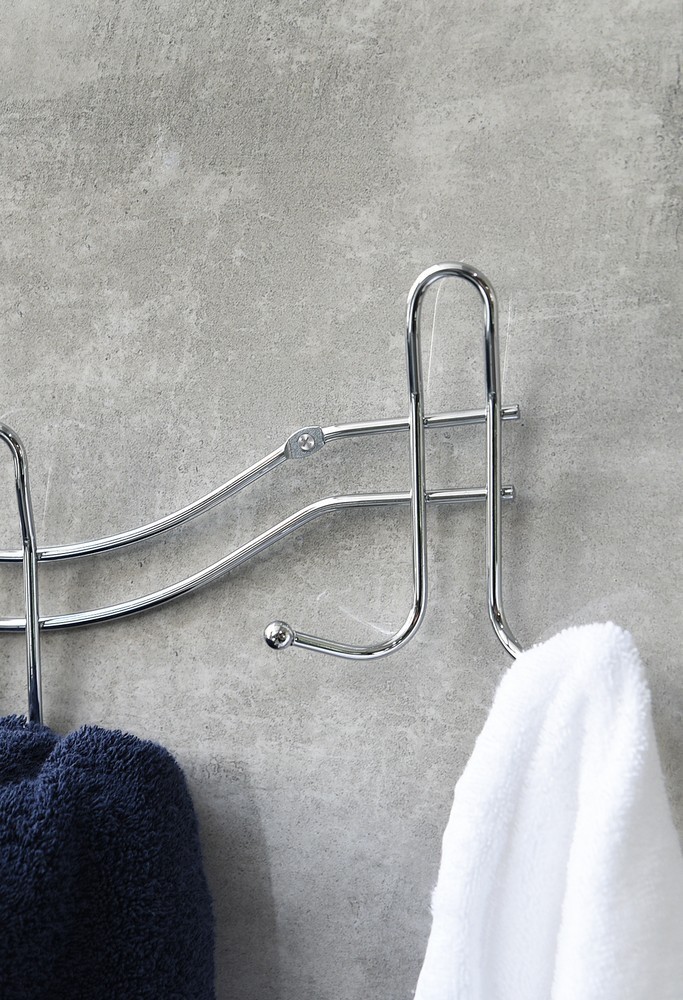 Drátěný koupelnový věšák vyrobený z lesklého chromového drátu. Jeho montáž je pomocí šroubů a hmoždinek, které jsou součástí balení. Nástěnný věšák má až 6 háčků na zavěšení ručníků, županů nebo oblečení.