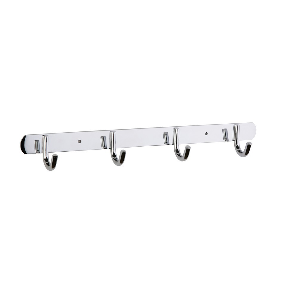 Koupelnový věšák z nerezové oceli, který má čtyři háčky na zavěšení ručníků, županů nebo oblečení. Instalace pomocí dvou šroubů a hmoždinek, které jsou součástí balení.