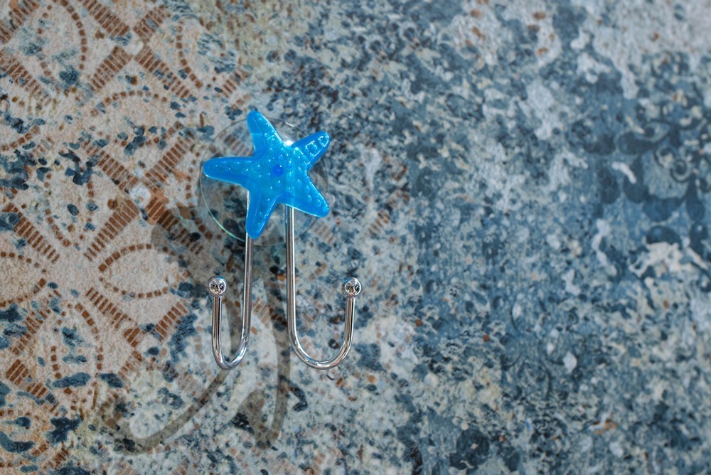 Malý koupelnový věšák s přísavkou. Díky přísavce je její montáž a demontáž extrémně jednoduchá.