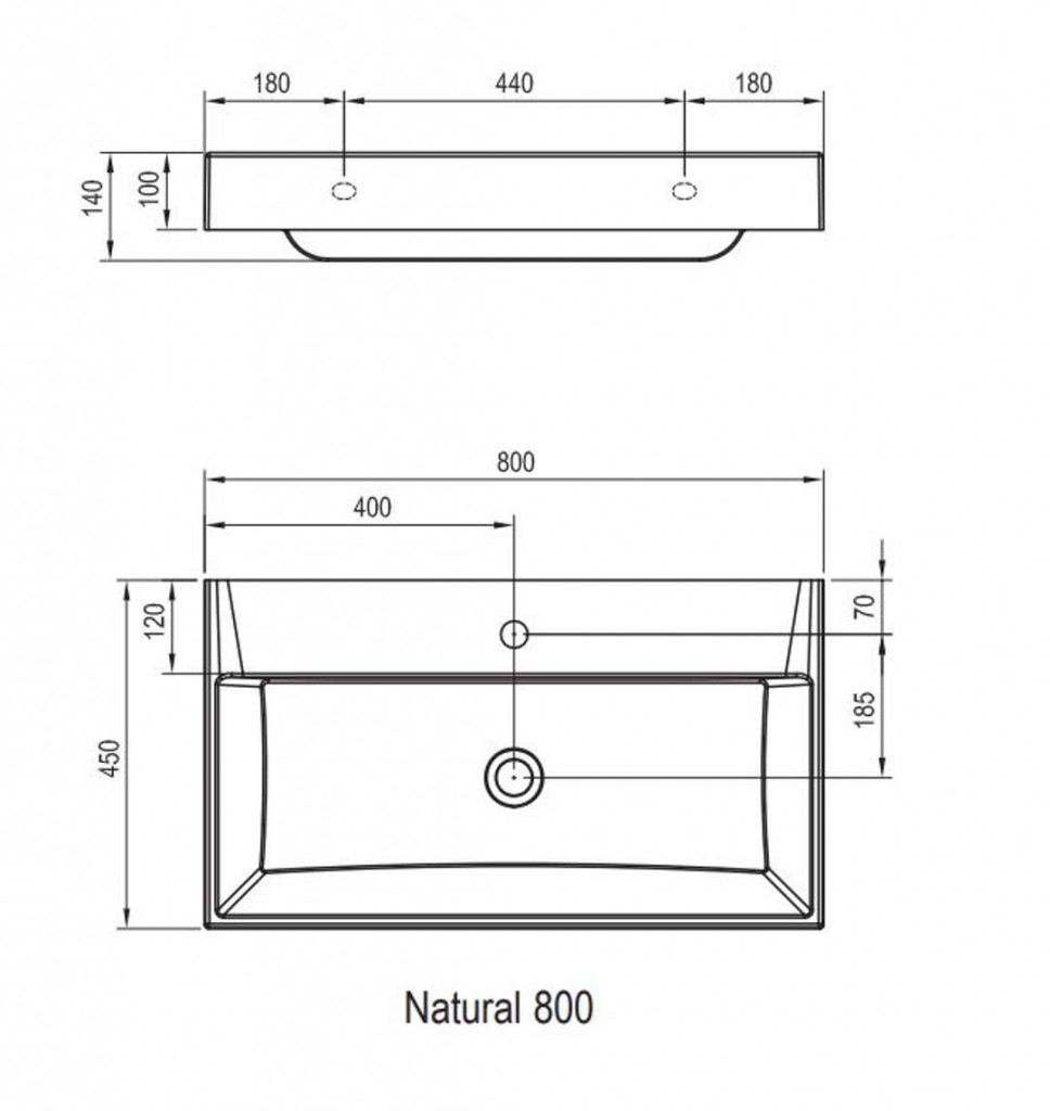 Nábytkové umyvadlo Natural 800, bez přepadu