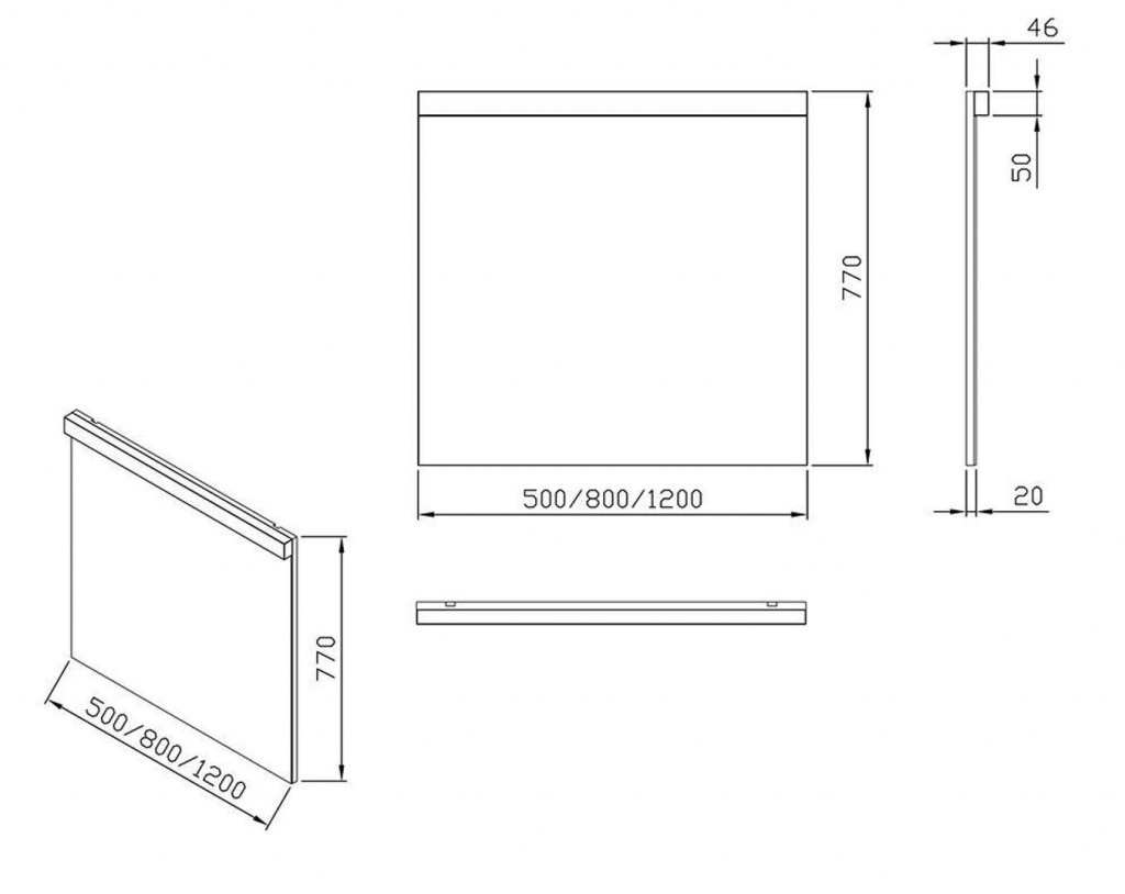 - rozměry: 1200 x 50 x 770 mm