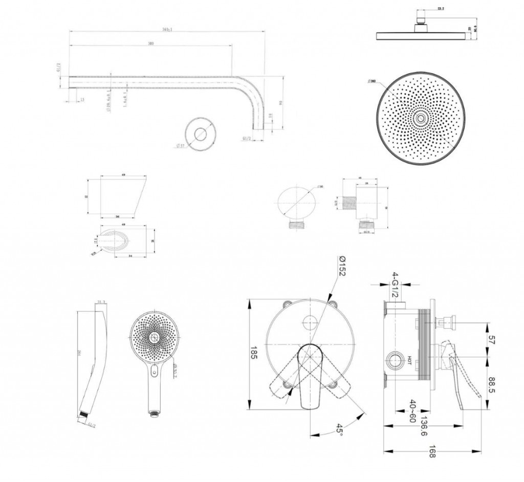 horní sprchu 260 mm se sprchovým ramenem 350 mm