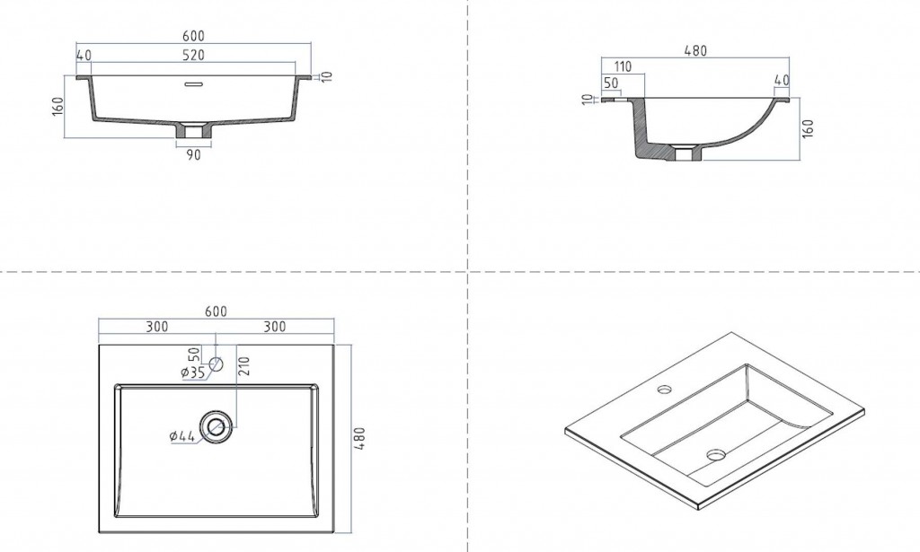 - umyvadlo s 1 otvorem pro baterii, s přepadem