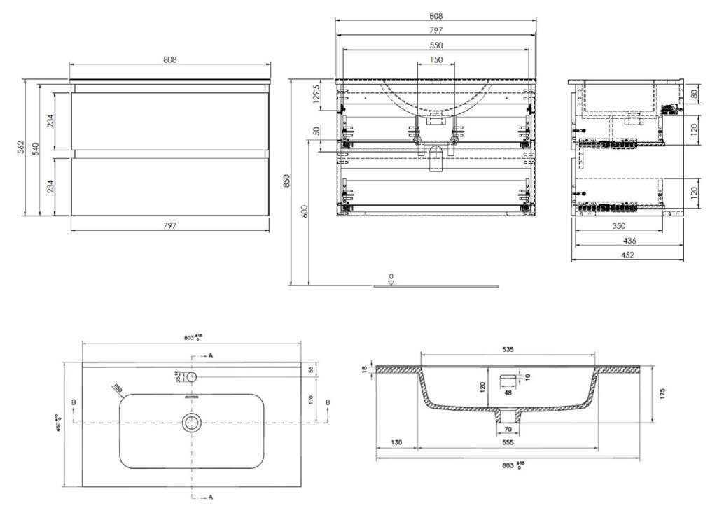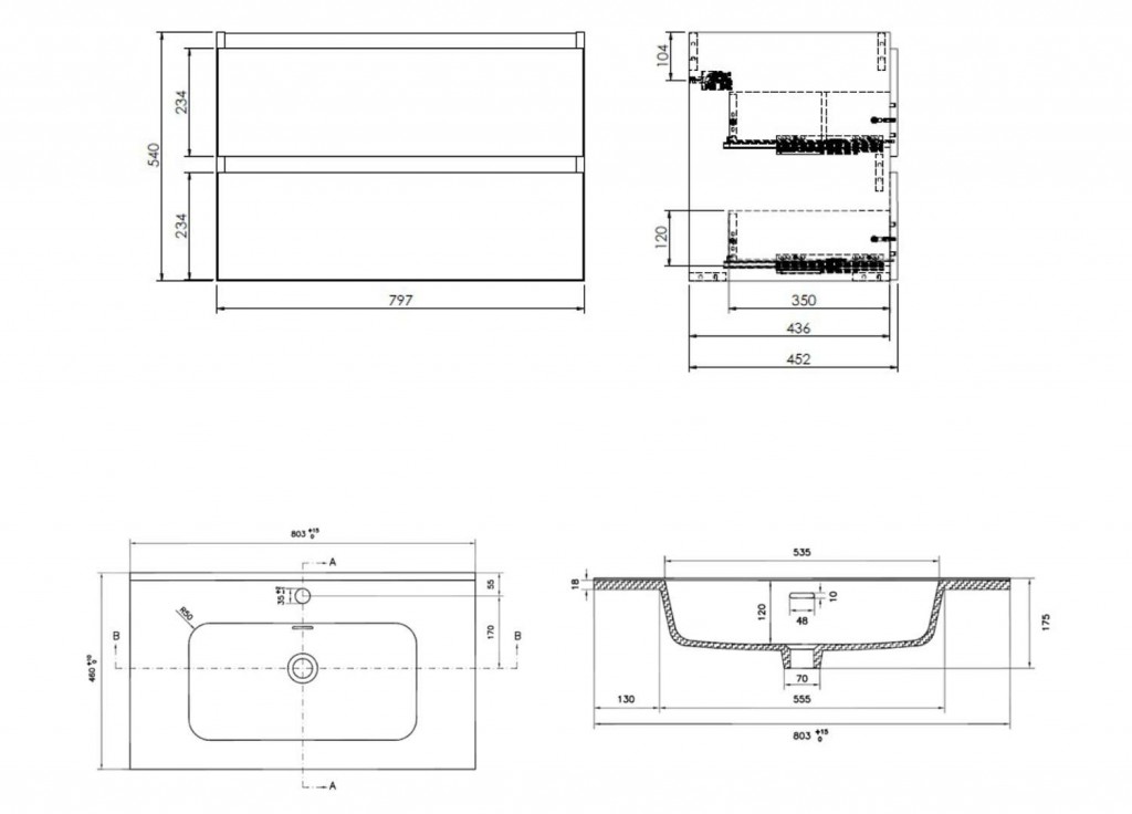- rozměry skříňky: šířka 800 mm, hloubka 460 mm