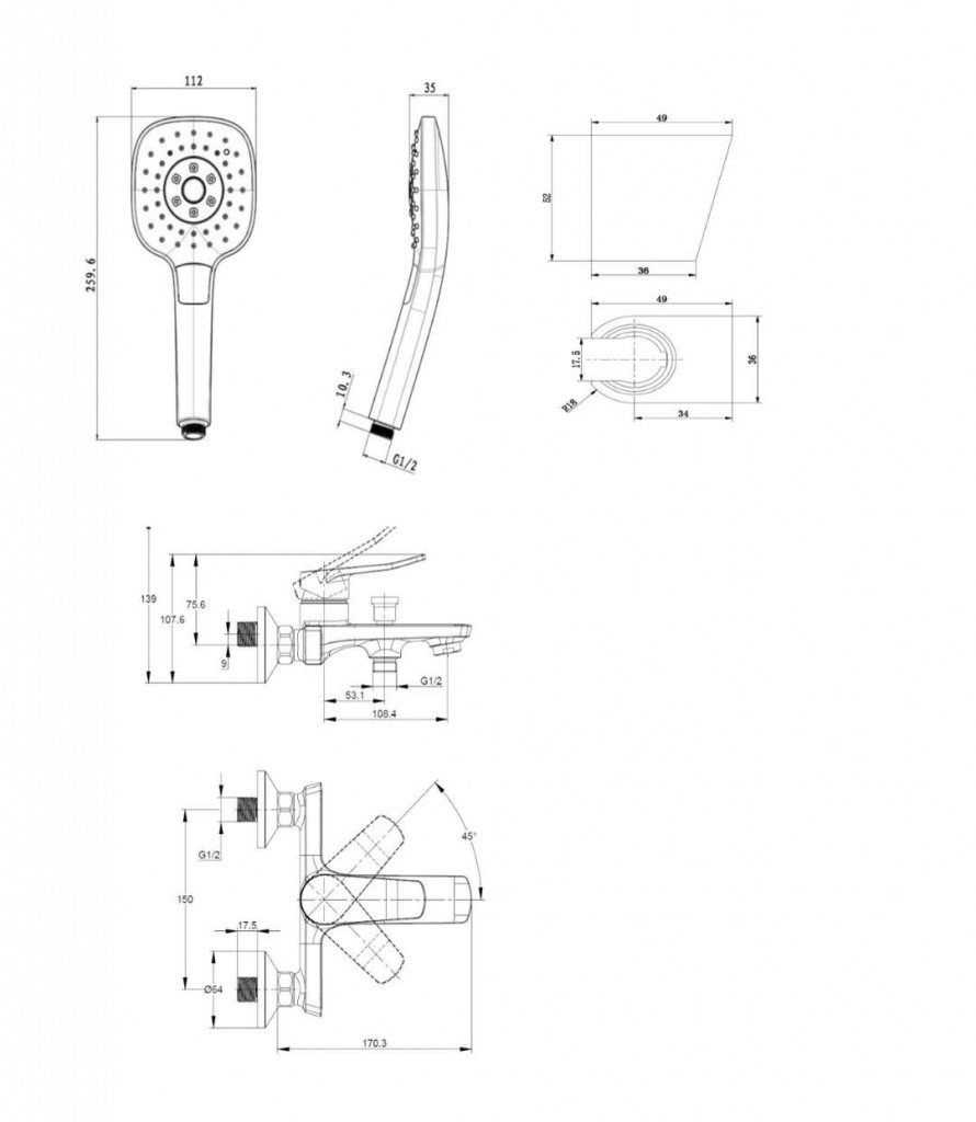 sprchová souprava obsahuje