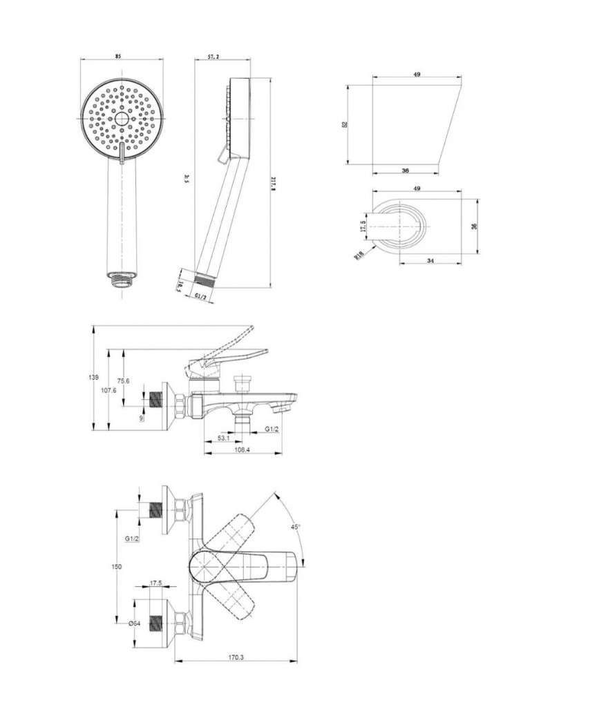 nástěnný držák sprchy