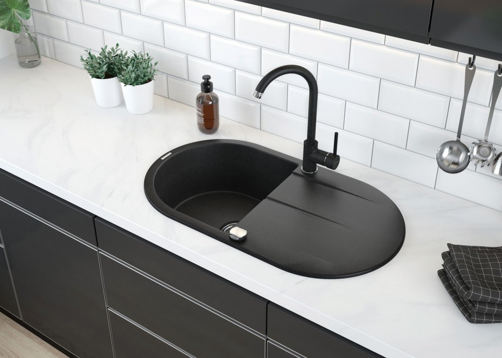 Stojánková dřezová baterie Nemezja s výtokem ve tvaru U v elegantním alabastrovém provedení je perfektním řešením pro moderní, světlé, minimalistické kuchyně. Tato baterie se vyznačuje vysokým, zaobleným výtokem typu U, pohodlnou pákou umístěnou na boku a perlátorem, který proud provzdušňuje. Grafit dřezová baterie z kolekce Nemezja bude nejlépe vypadat v kombinaci se světlým granitovým dřezem a světlou nebo tmavou pracovní deskou.