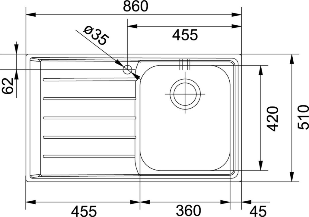 - dřez 360 × 420 × 200 mm