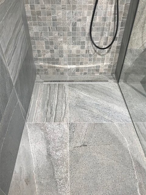 - Spádovací lišta pomáhá zakrýt přechod vzniklý během výstavby sprchového koutu mezi spádovanou a nespádovanou částí podlahy.