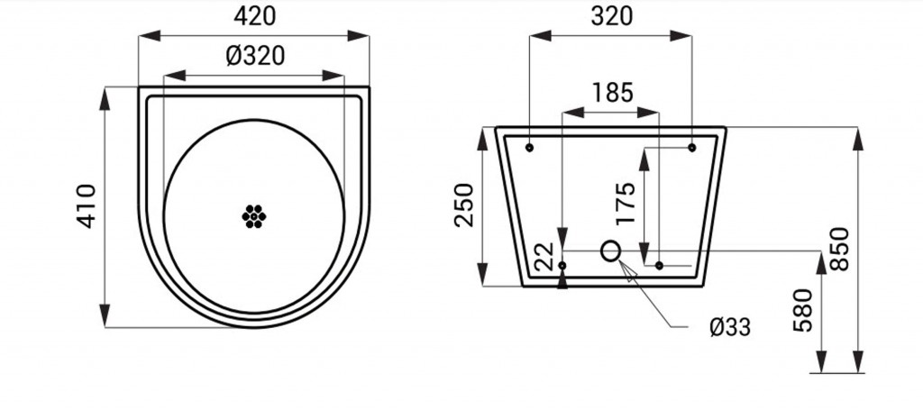 Nerezové umyvadla SLUN 22M, bez přepadu