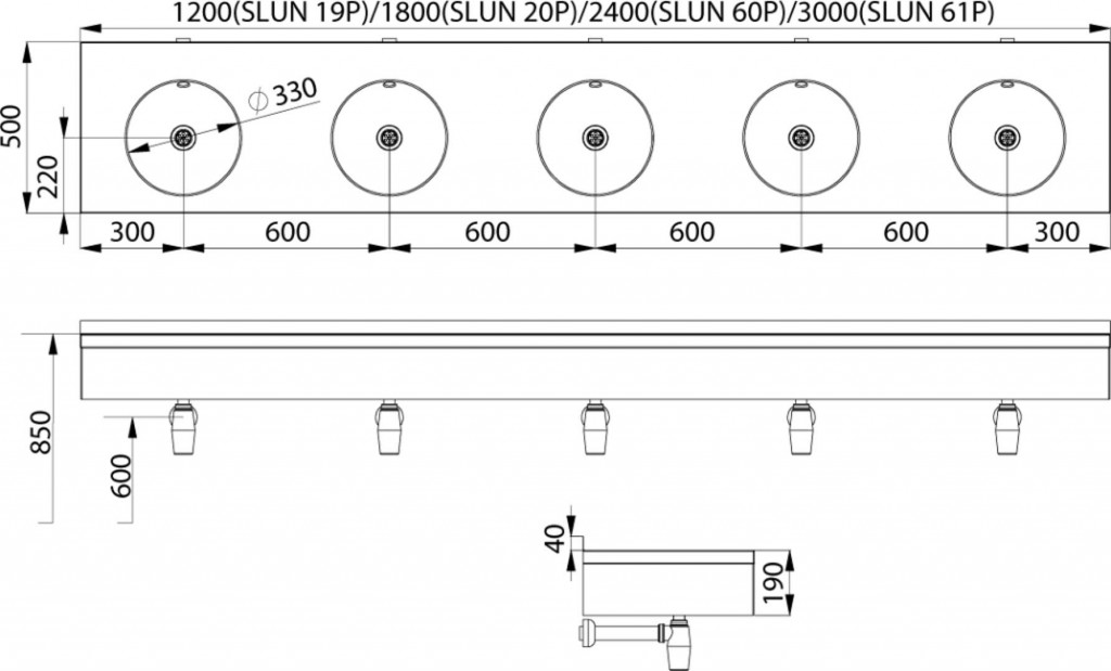 Nerezové čtyřjumyvadlo SLUN 60P, s opláštěním a přepady