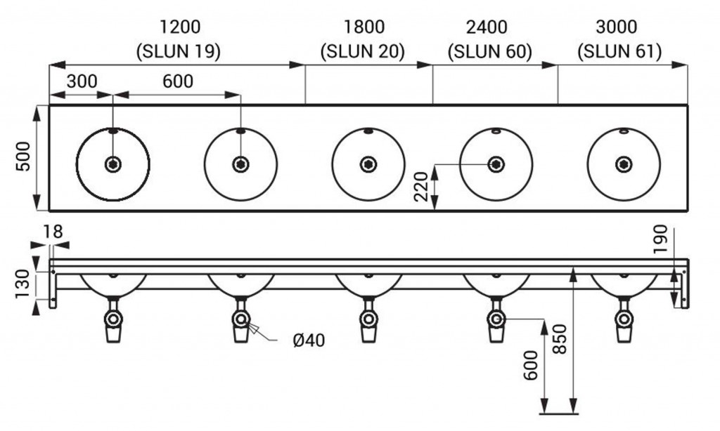 Nerezové trojumyvadlo SLUN 20, s opláštěním a přepady