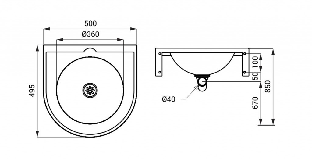 Nerezové umyvadlo SLUN 47X, bez přepadu