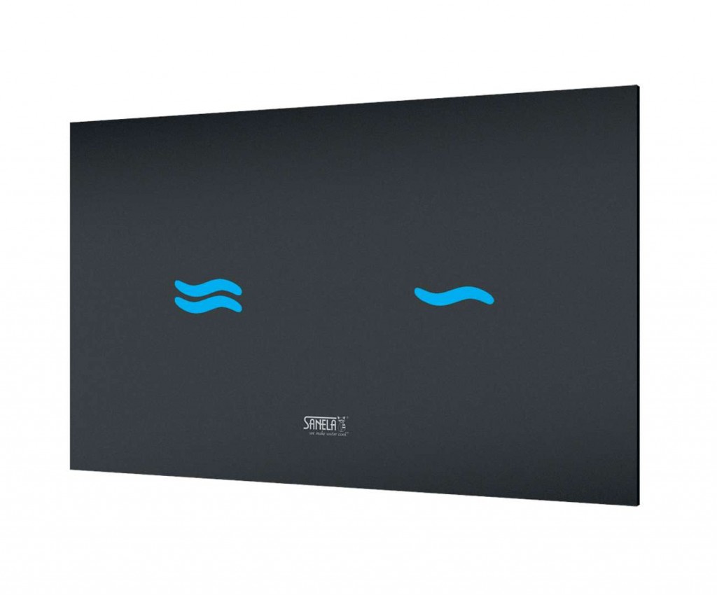 - reaguje na dotyk symbolu na skleněné desce spláchnutím WC