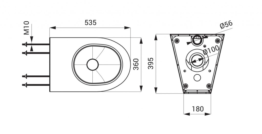- montáž přes závitové tyče (M10, délka 190 mm), z druhé strany stěny