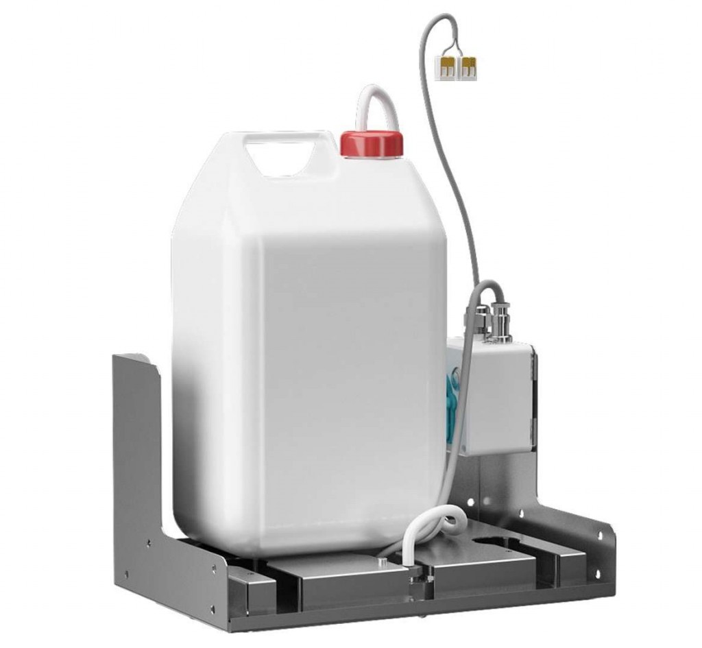 - nerezový montážní držák s dávkovačem dezinfekce a elektronikou