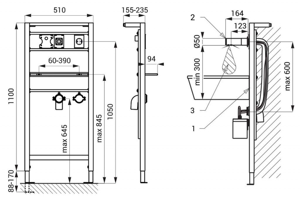 - rám určený do sádrokartonových konstrukcí, pro ukotvení na zem a do zadní zdi