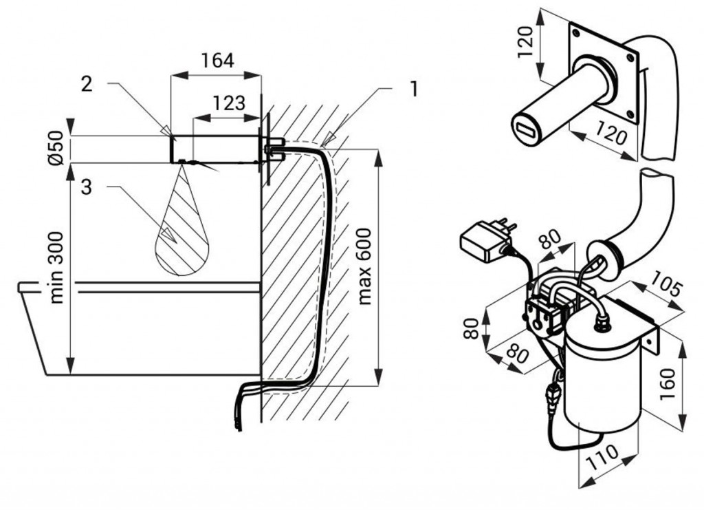 - nerezové ramínko s dávkovačem mýdla a elektronikou