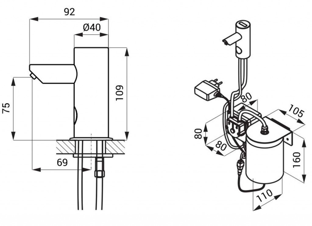 - nerezové ramínko s dávkovačem mýdla a elektronikou