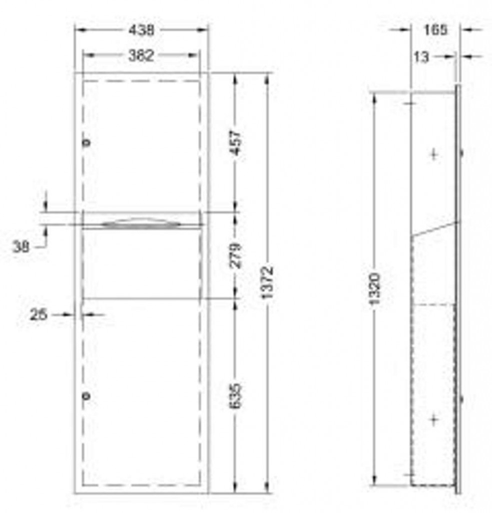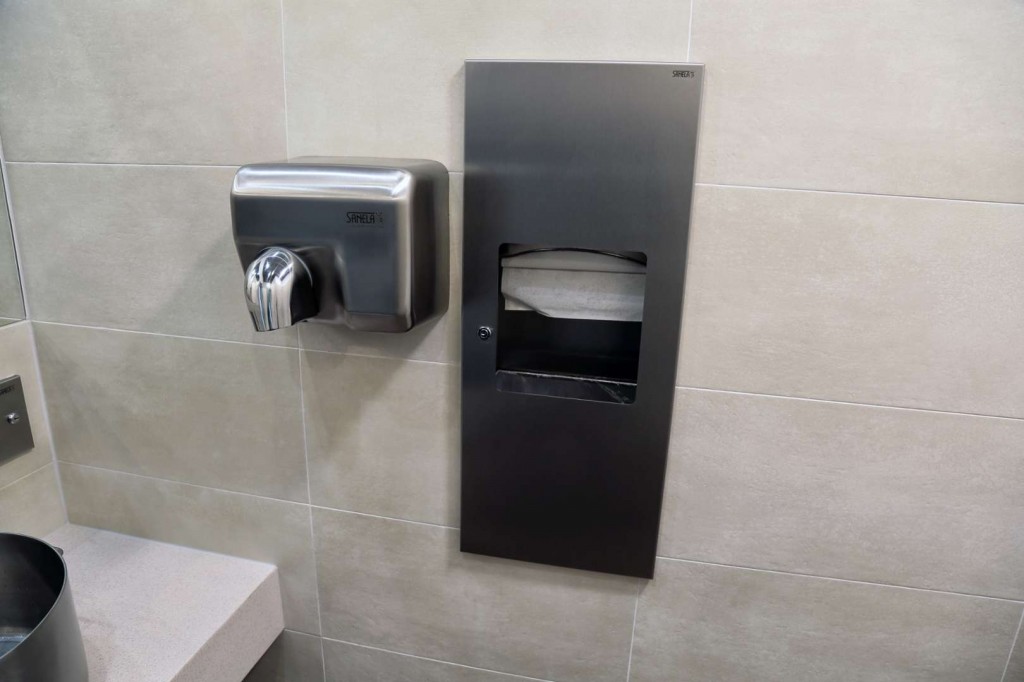 Zápustný zásobník skládaných papírových ručníků v kombinaci s nerezovým odpadkovým košem