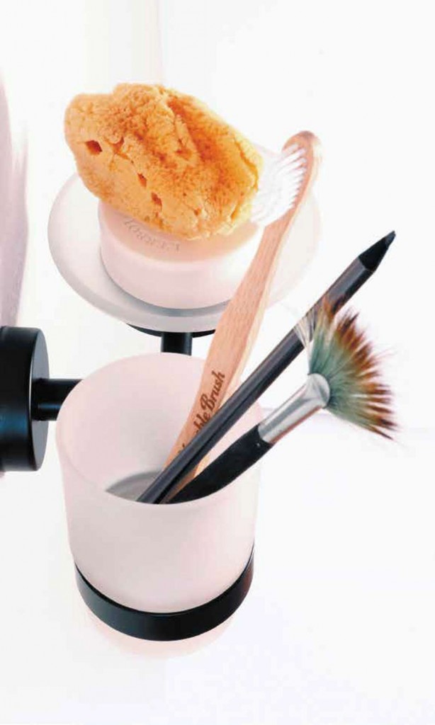 Sklenička na ústní hygienu s mýdlenkou a dvojitým držákem