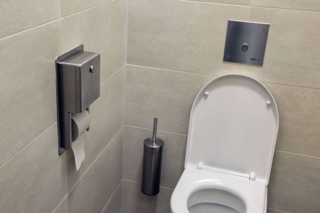 nerezový držák toaletních rolí k montáži na stěnu, pro dvě běžné WC papírové role (D = do 135 mm), po použití první role je automaticky doplněna druhá, se zámkem a klíčem, povrch matný
