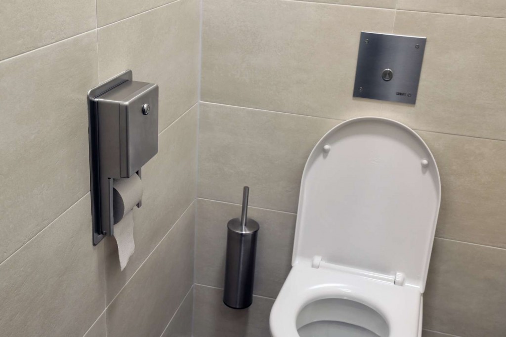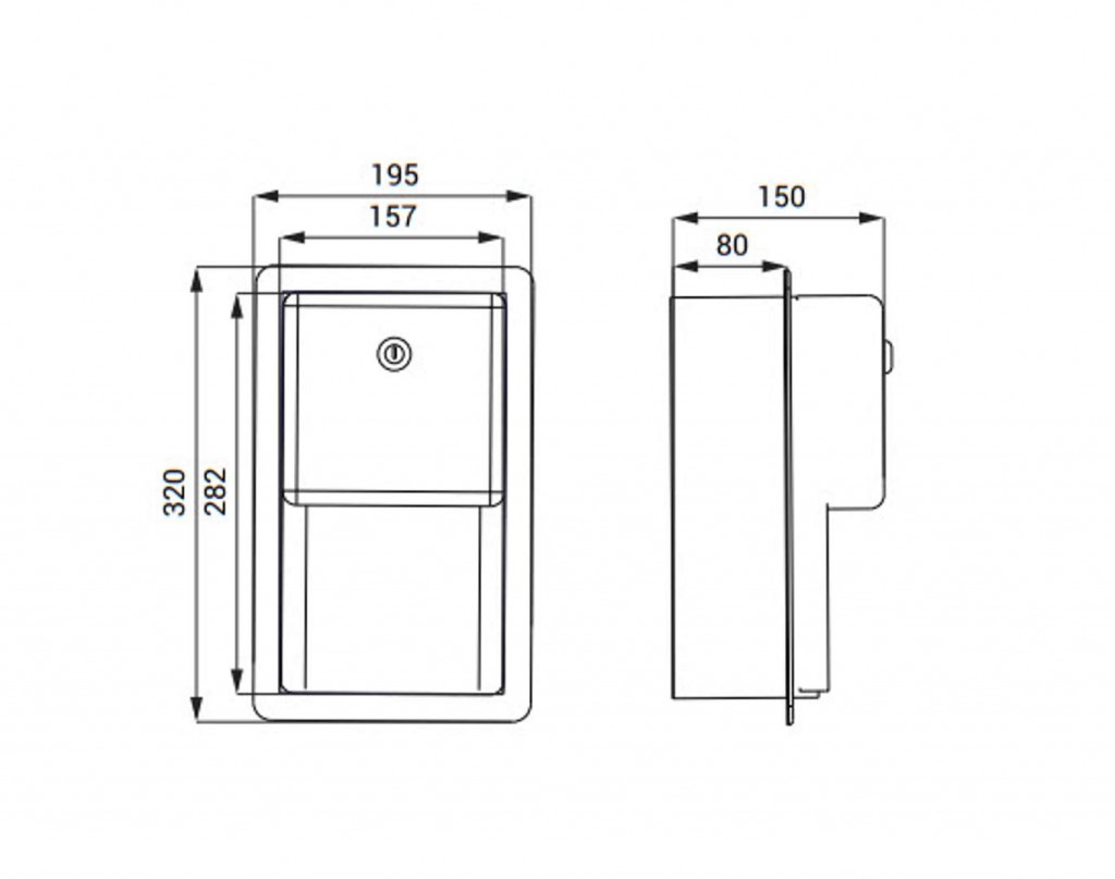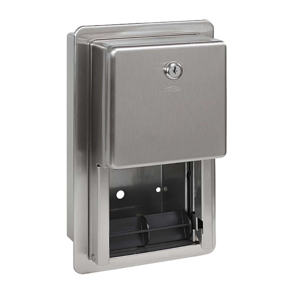nerezový držák toaletních rolí k montáži pod omítku, pro dvě běžné WC papírové role (D = do 135 mm), po použití první role je automaticky doplněna druhá, se zámkem a klíčem, povrch matný