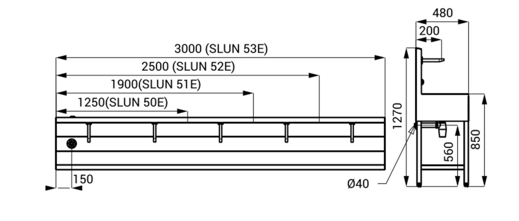 - nerezový mycí žlab s elektronikou a výtokovými ramínky