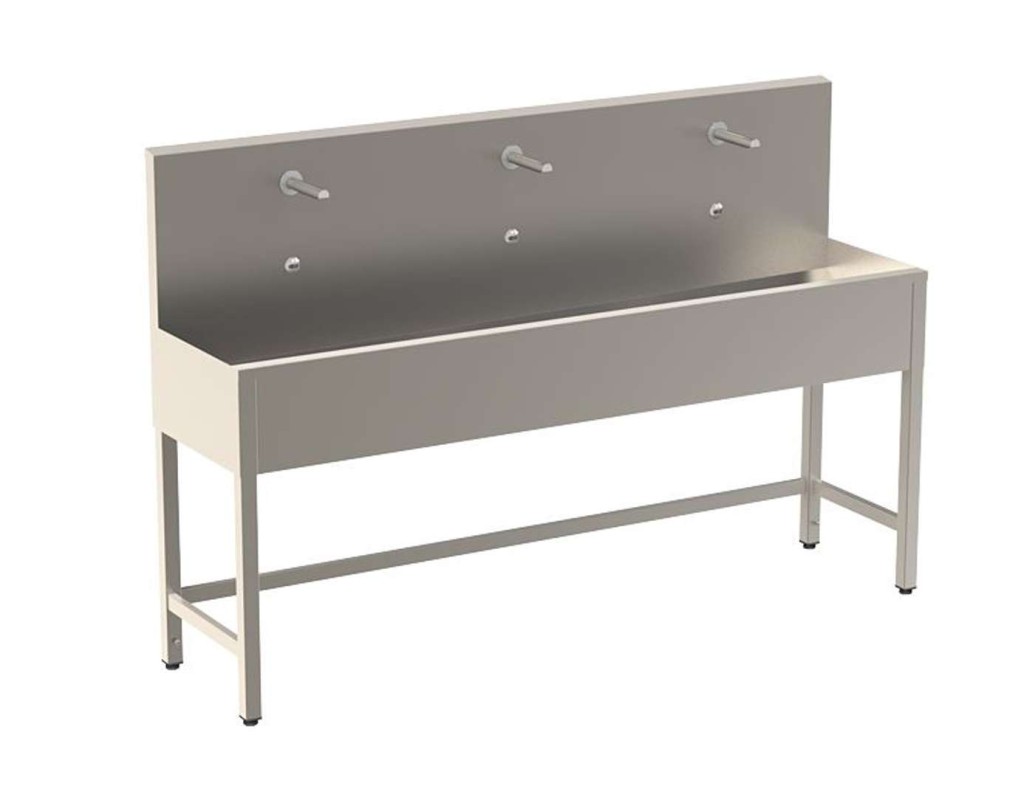 Nerezový stojící mycí žlab s automatickým systémem pro ovládání vody