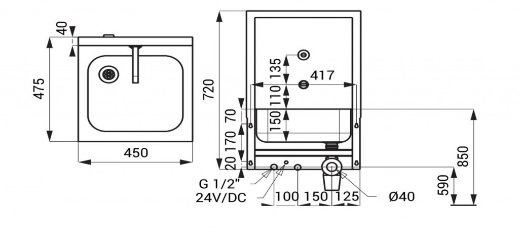 Nerezový automatický dřez se zadní stěnou SLUN 04EB, s opláštěním