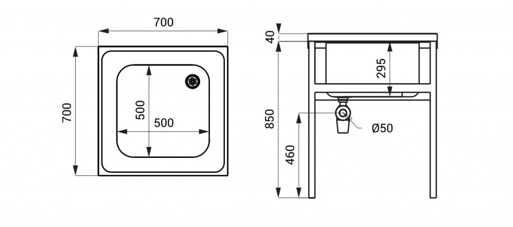 Nerezový velkokapacitní dřez SLUN 15 na nohou