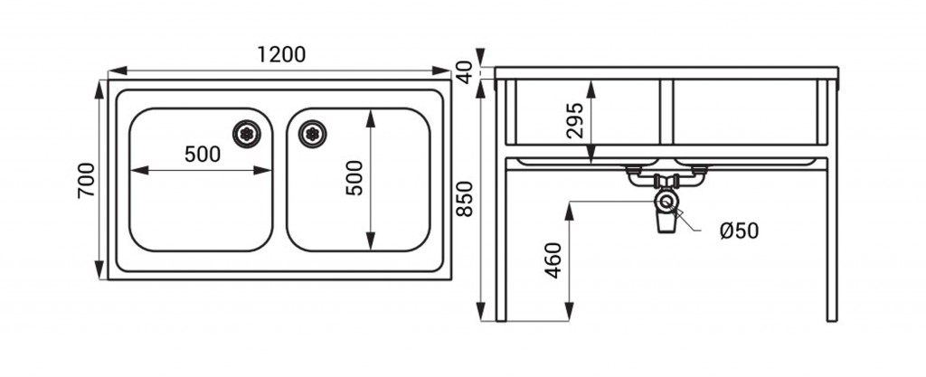 Nerezový velkokapacitní dvojdřez SLUN 16 na nohou
