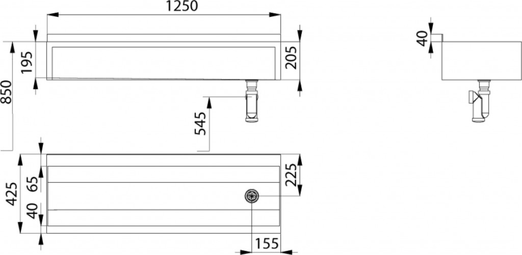 - otvor pro sifon standardně na pravé straně