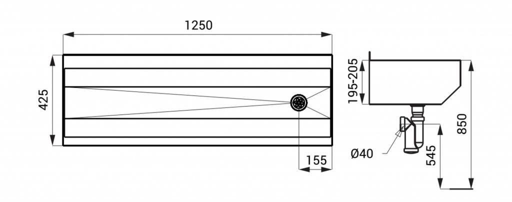 Nerezový mycí žlab, bez opláštění