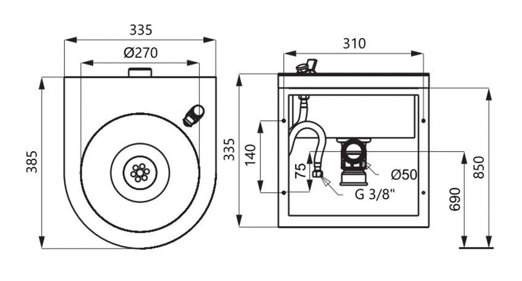 - závěsná nerezová pitná fontána s tlačnou armaturou