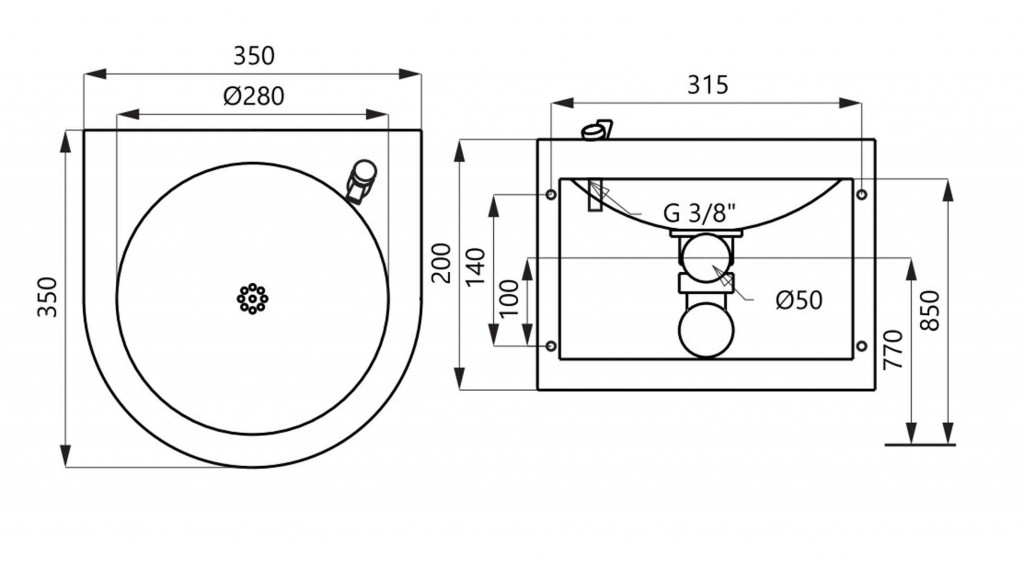 Nerezová pitná fontánka závěsná s tlačnou armaturou
