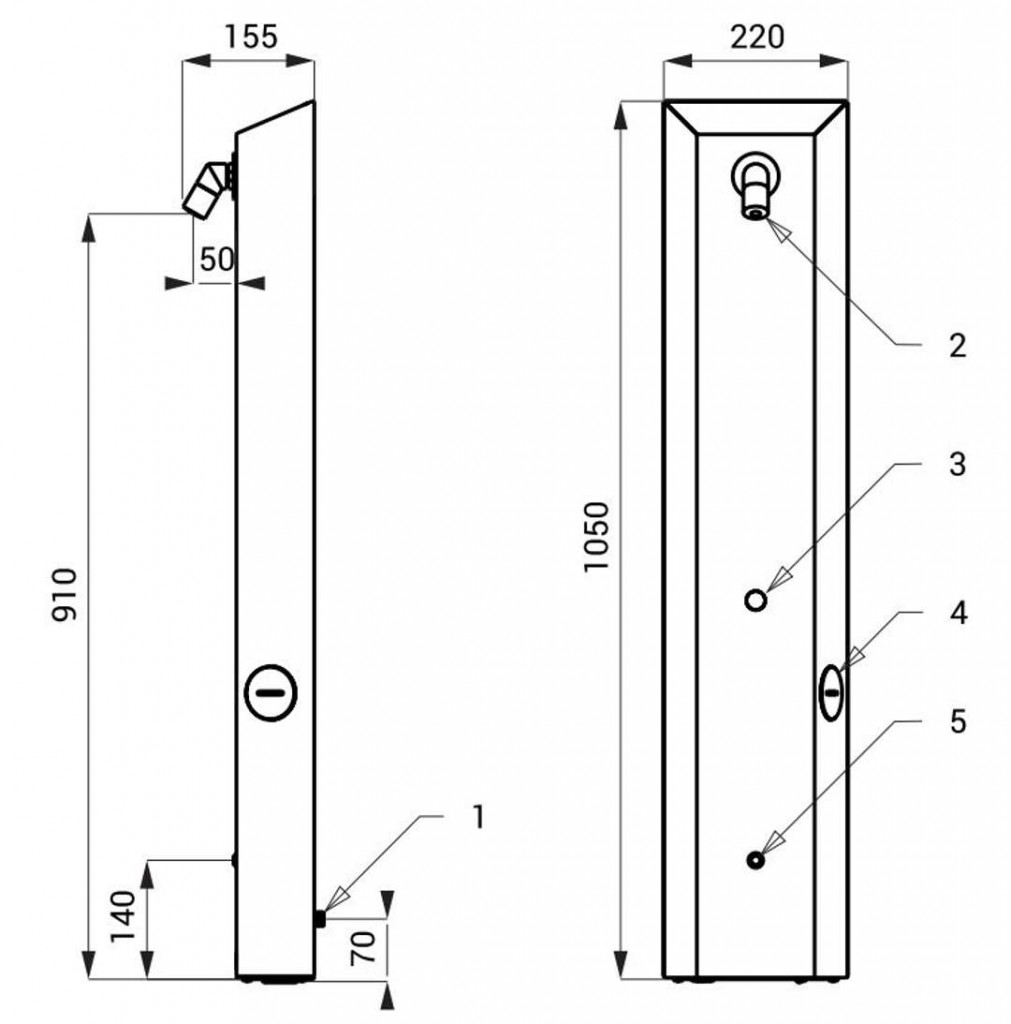 - sprchový panel s elektronikou a čtečkou hodnoty kreditu na žetonu