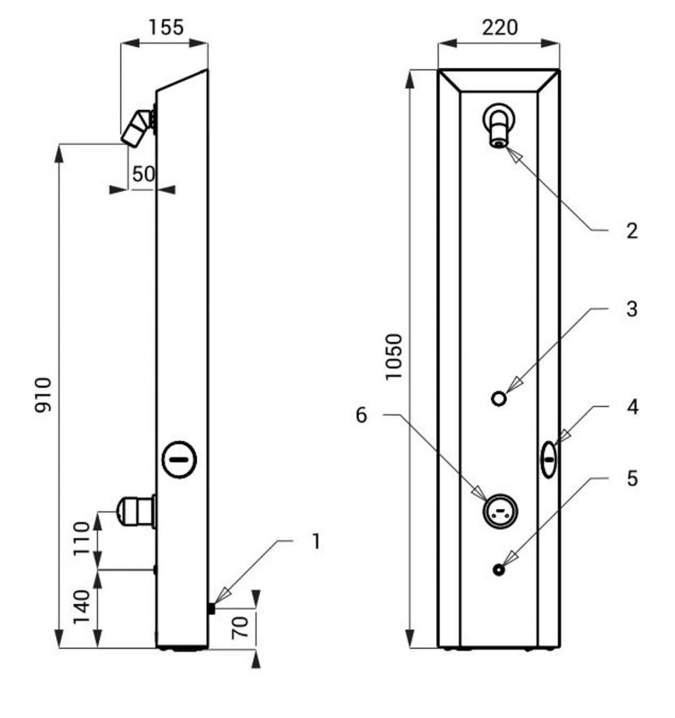 - sprchový panel s elektronikou a čtečkou hodnoty kreditu na žetonu