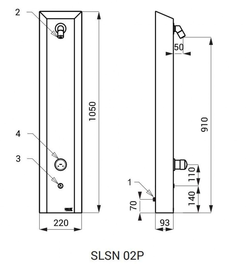 - sprchový panel s piezo elektronikou, elektromagnetický ventil 1 ks