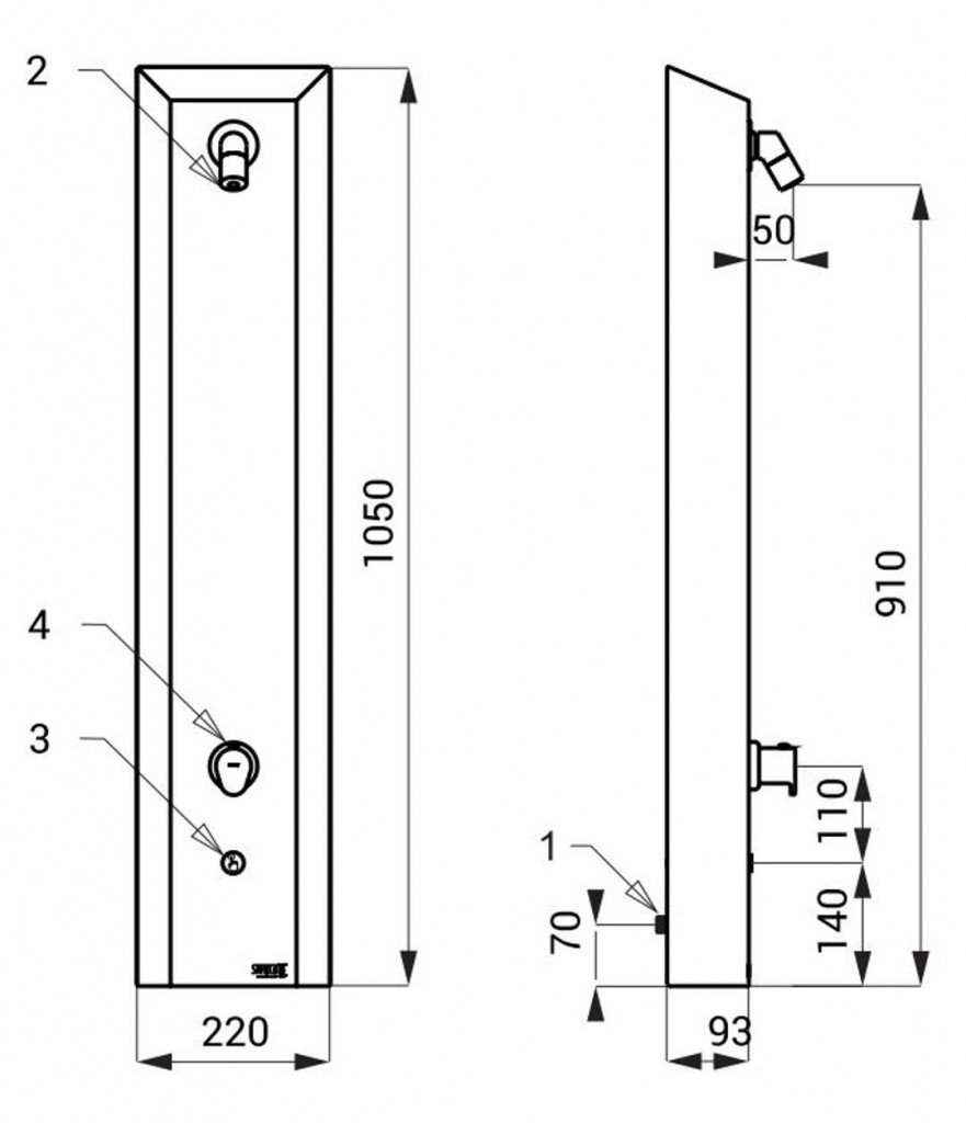 - nerezové sprchové nástěnné panely se zabudovaným piezo systémem pro ovládání vody