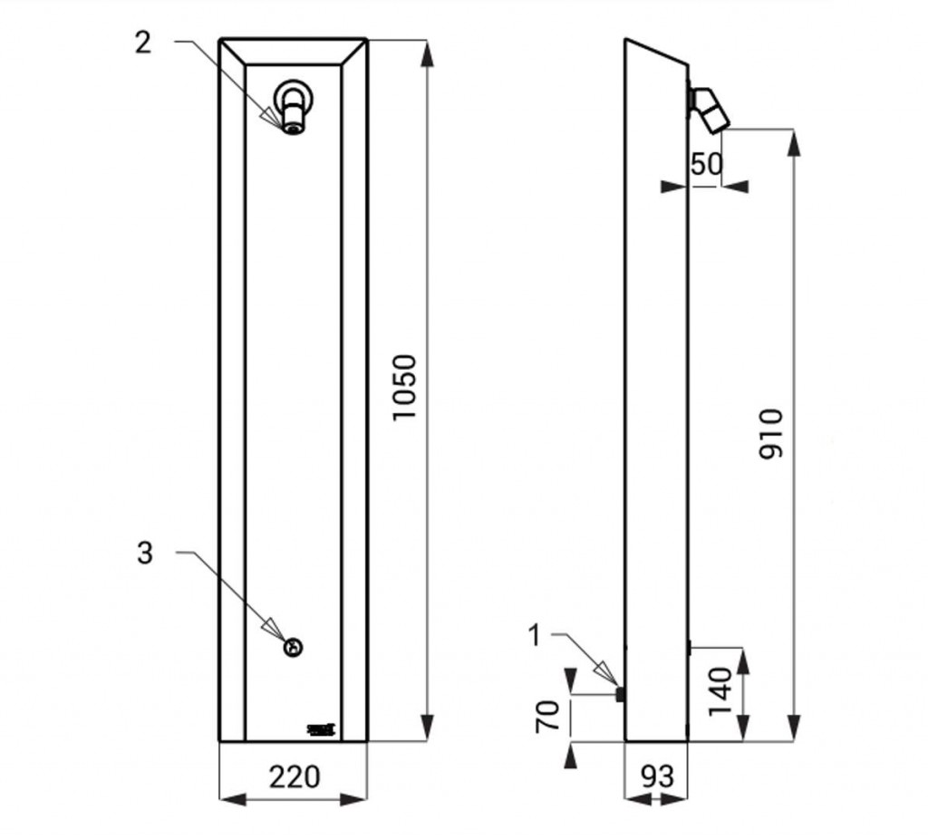 - sprchový panel s piezo elektronikou, elektromagnetický ventil 1 ks